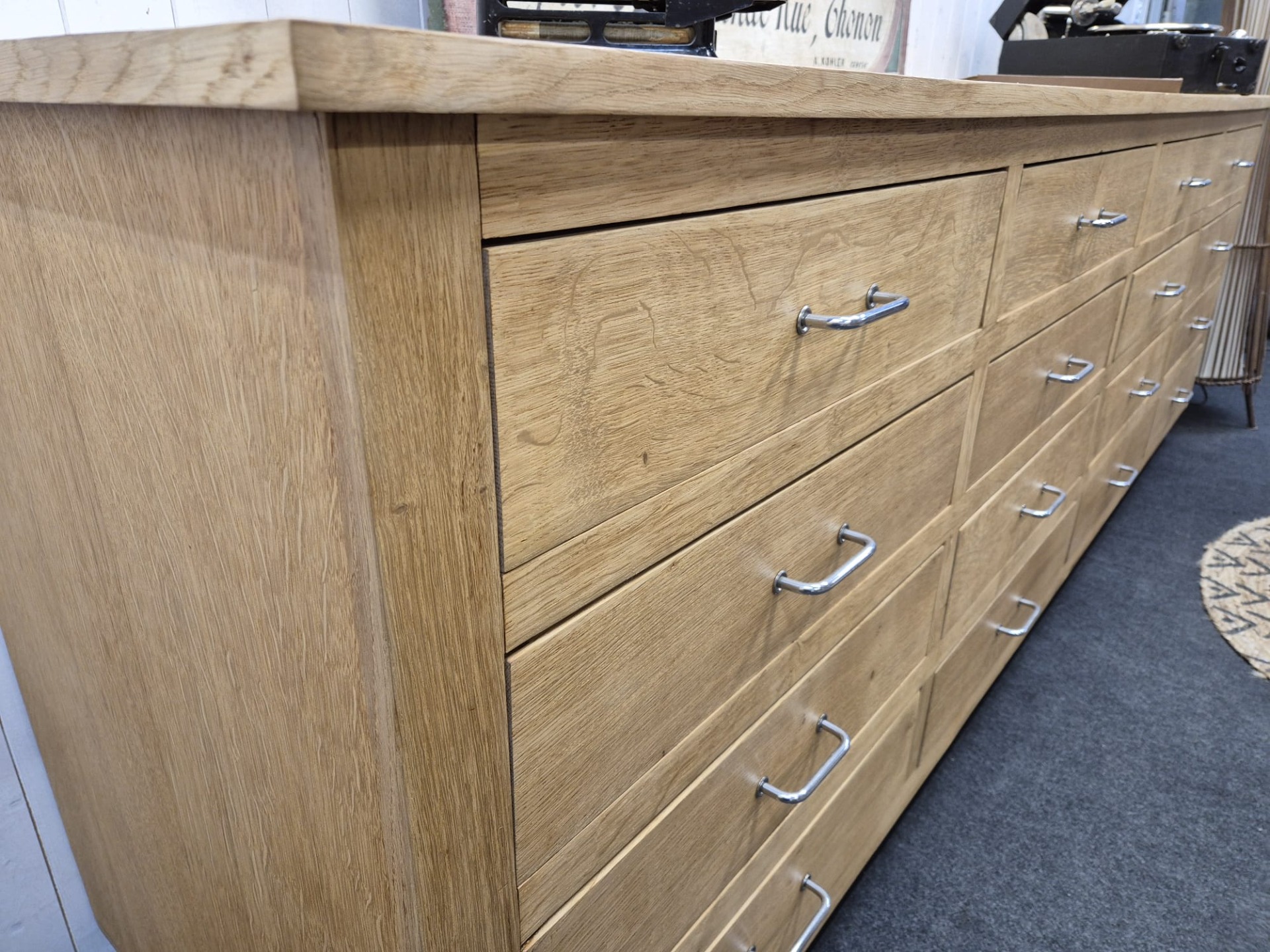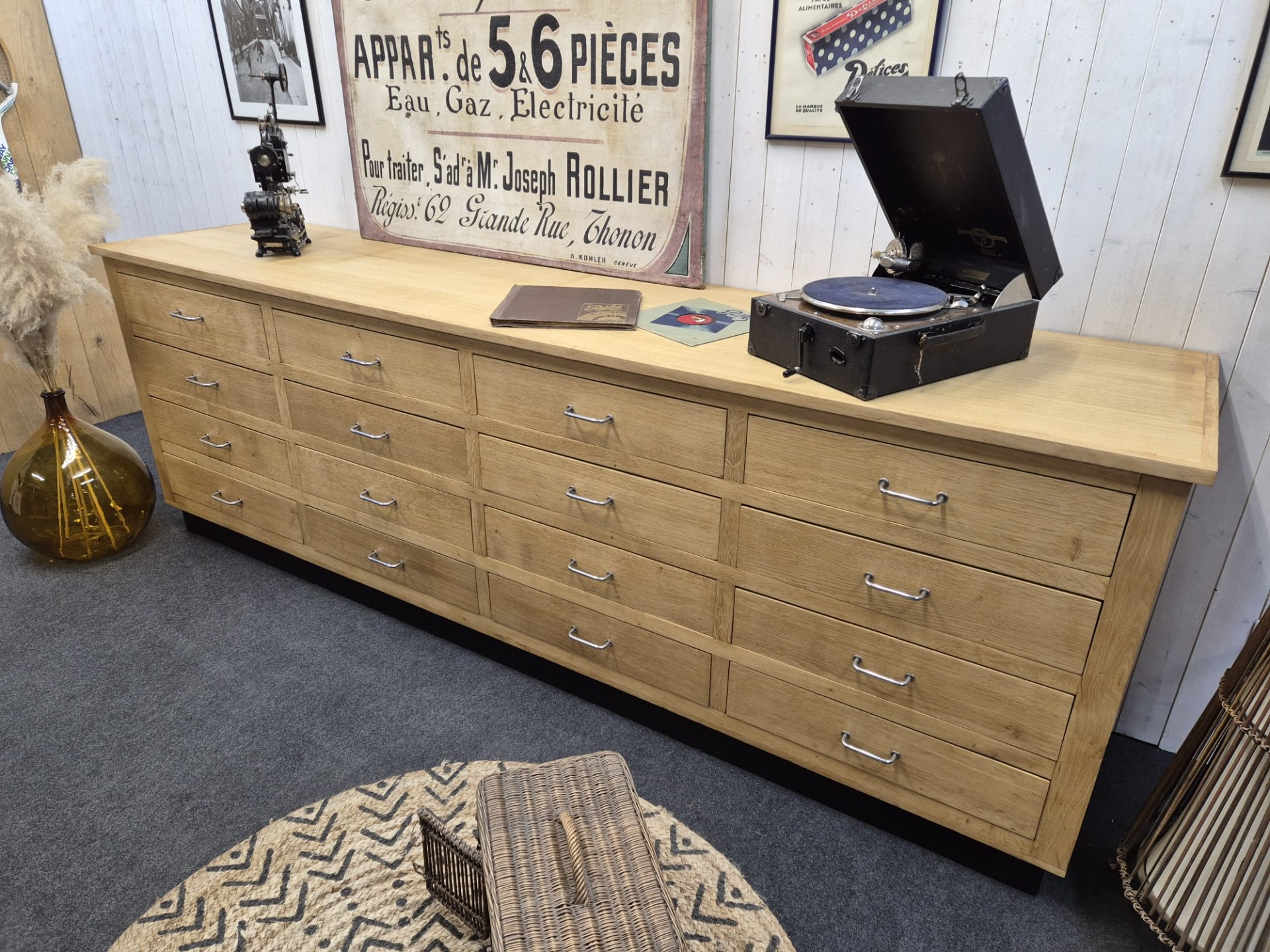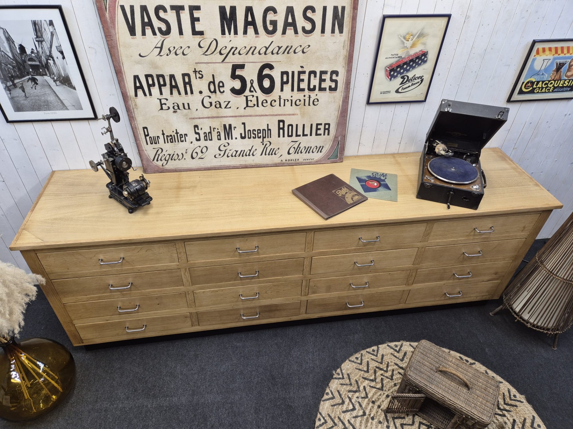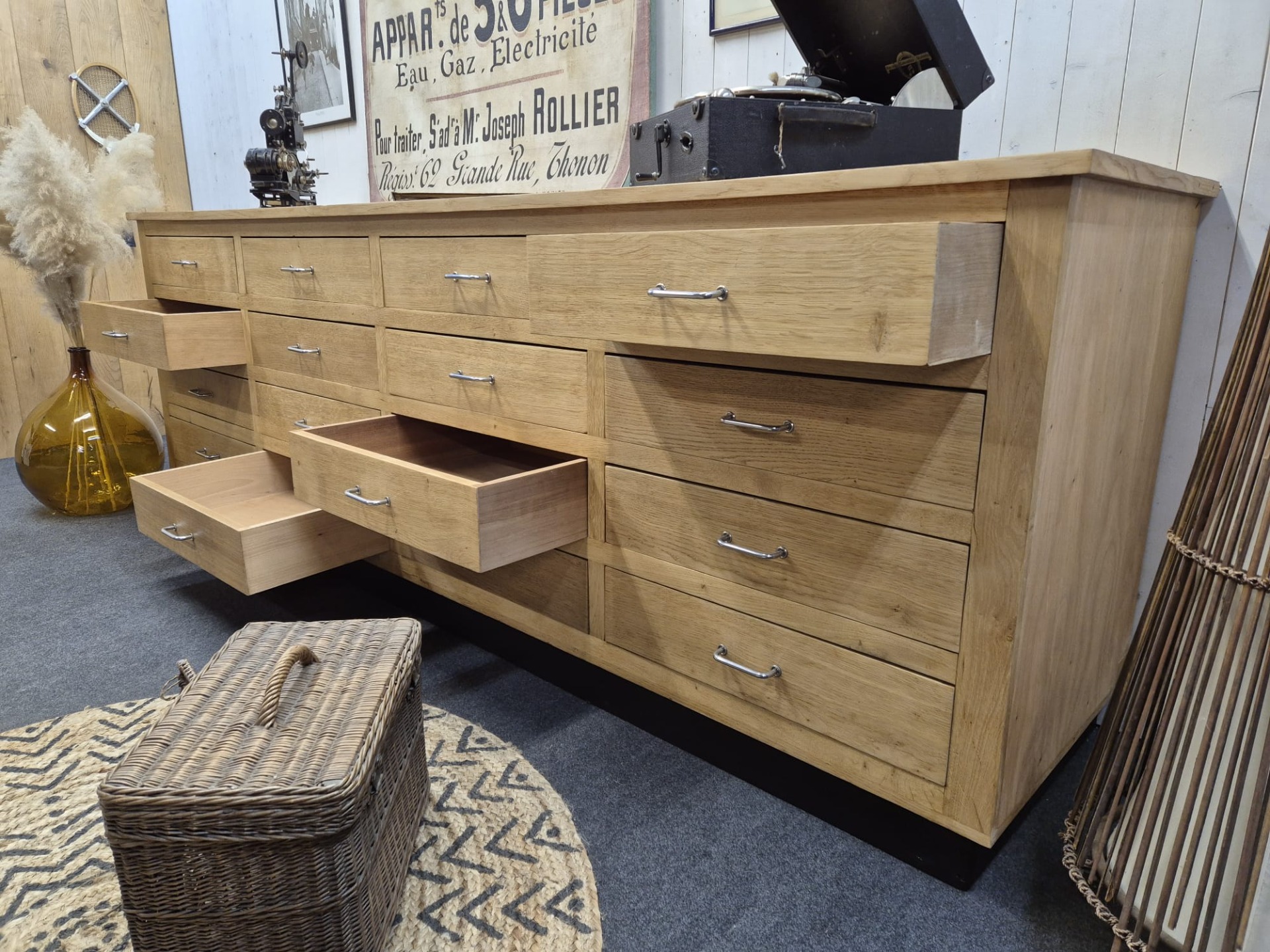 Il dispose de 16 grands tiroirs avec leurs poignées d'origine et de belles dimensions :