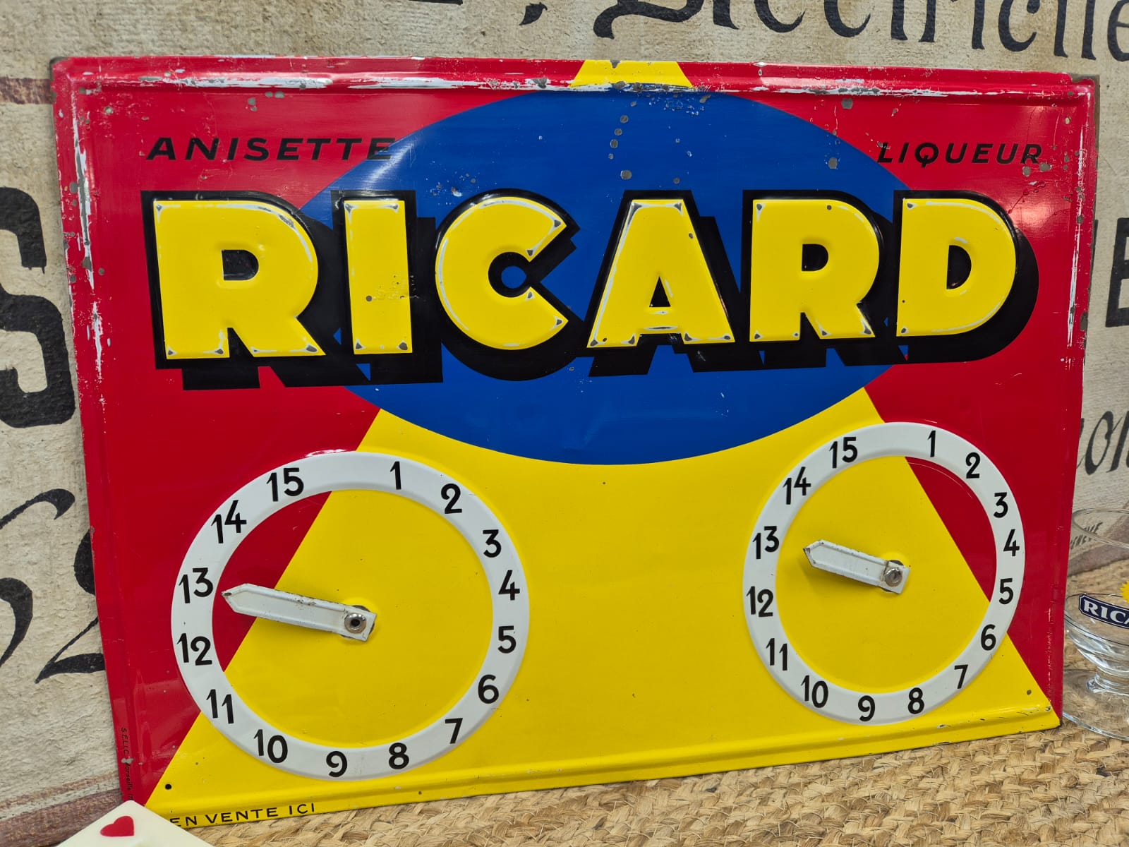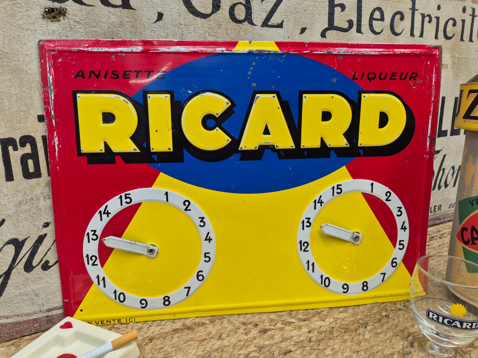 Jolie tôle lithographiée RICARD Anisette Liqueur avec compteur de points de pétanque.