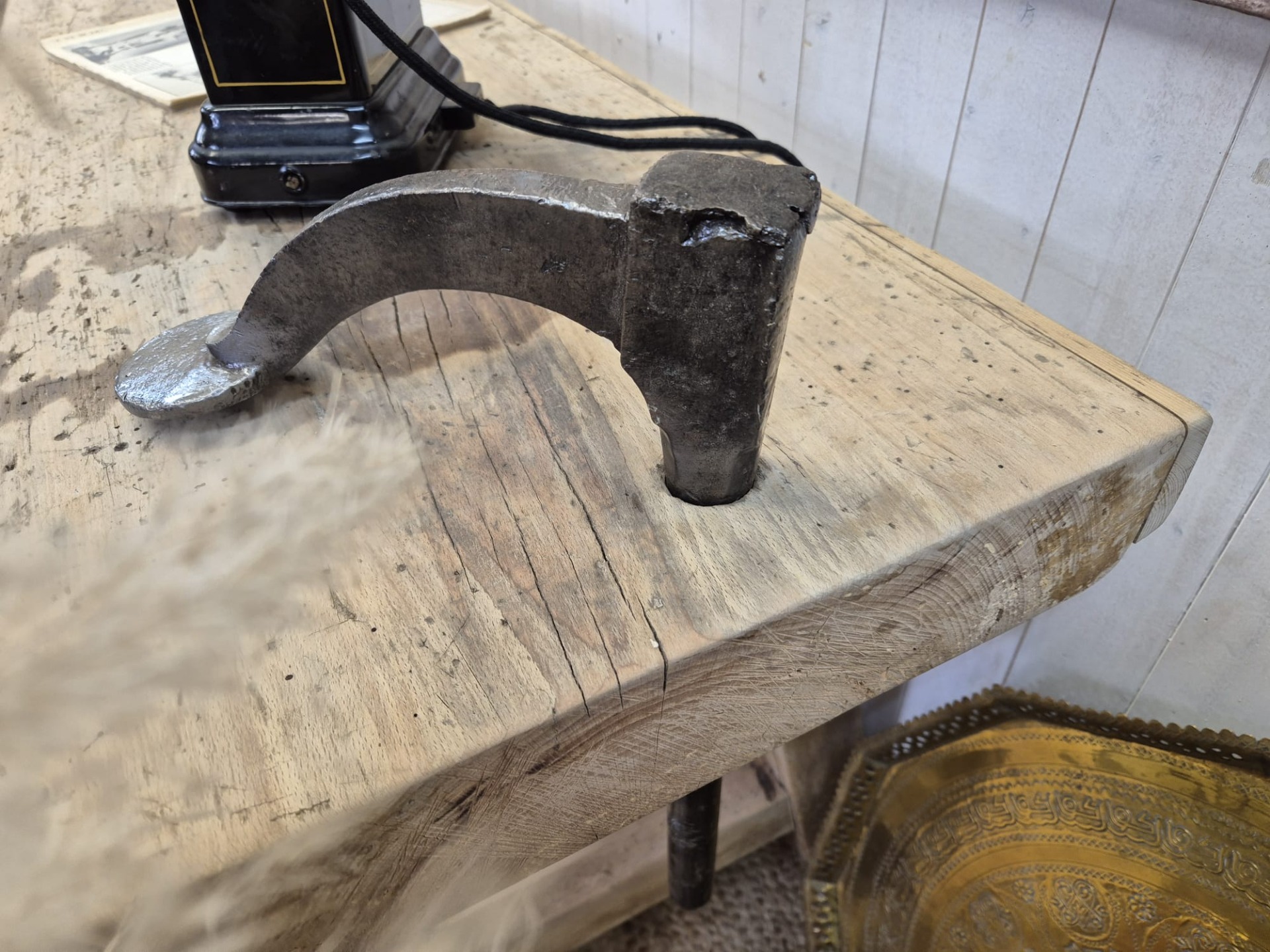 Entièrement restauré, il dispose d'un grand tiroir, de son étau fonctionnel et d'un très joli piètement.