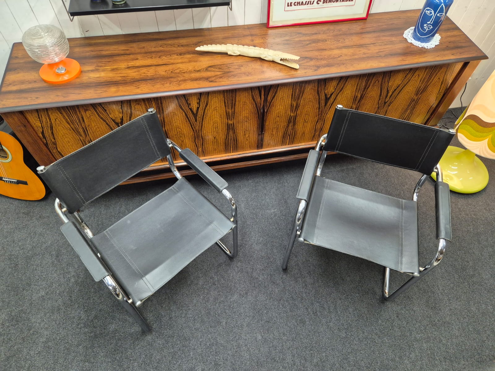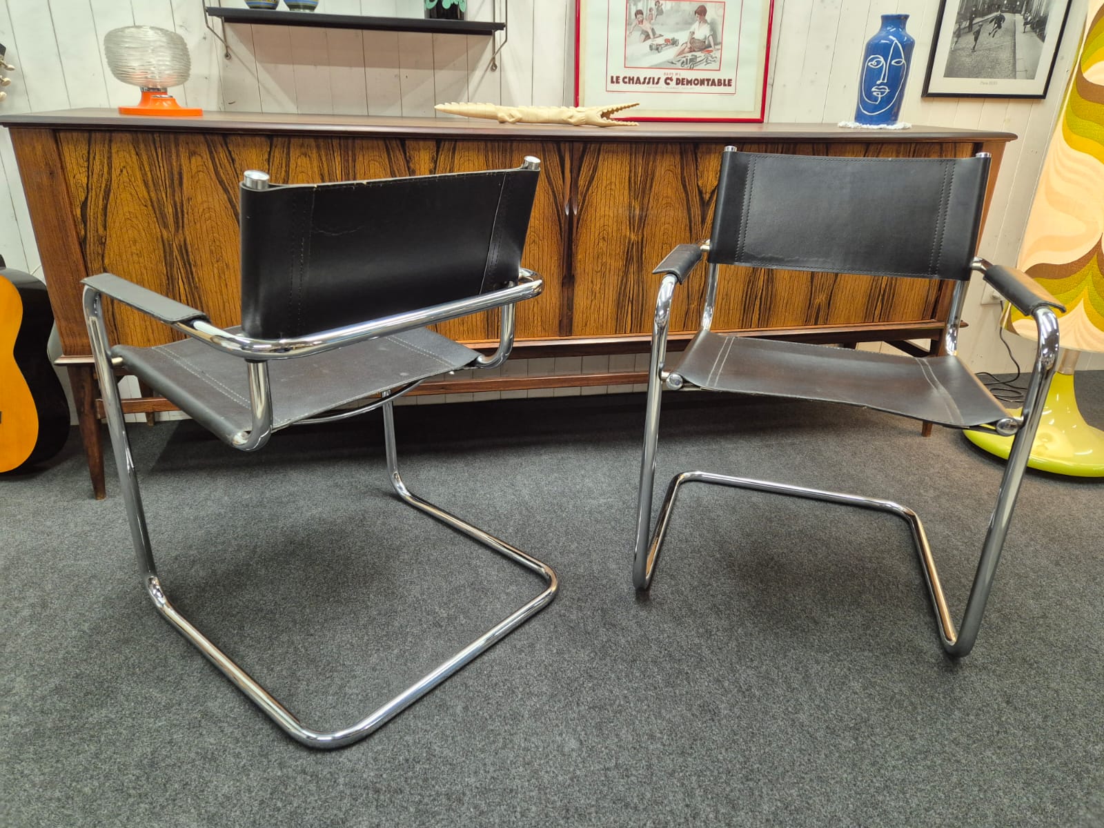 Très jolie paire de fauteuils vintage B34 , chrome et skaï noir en très bon état.