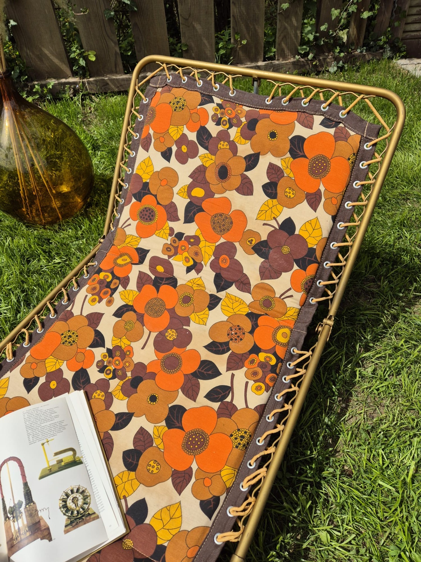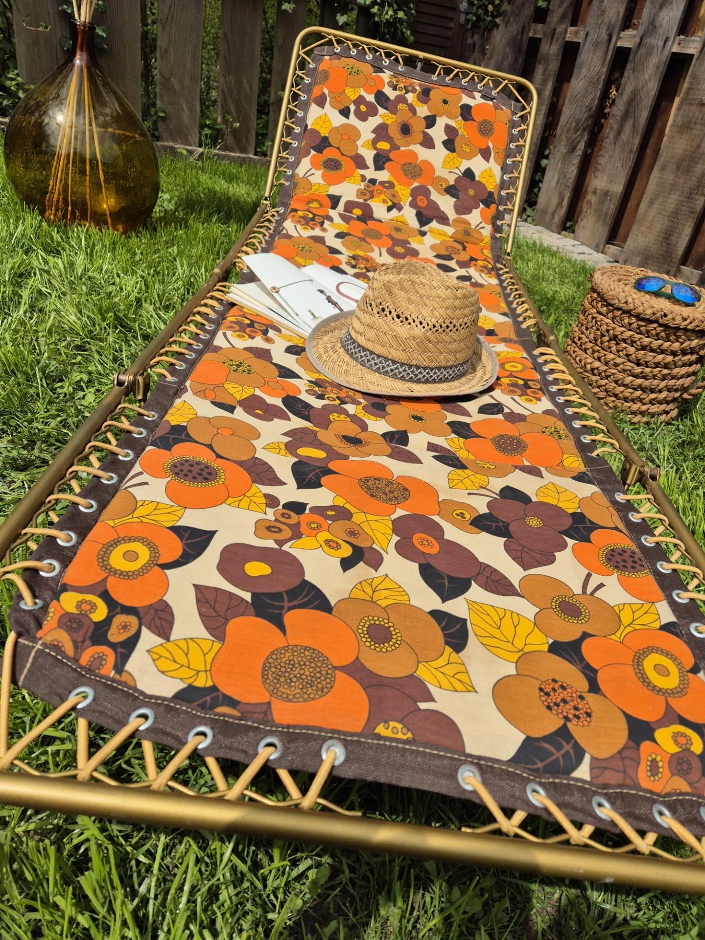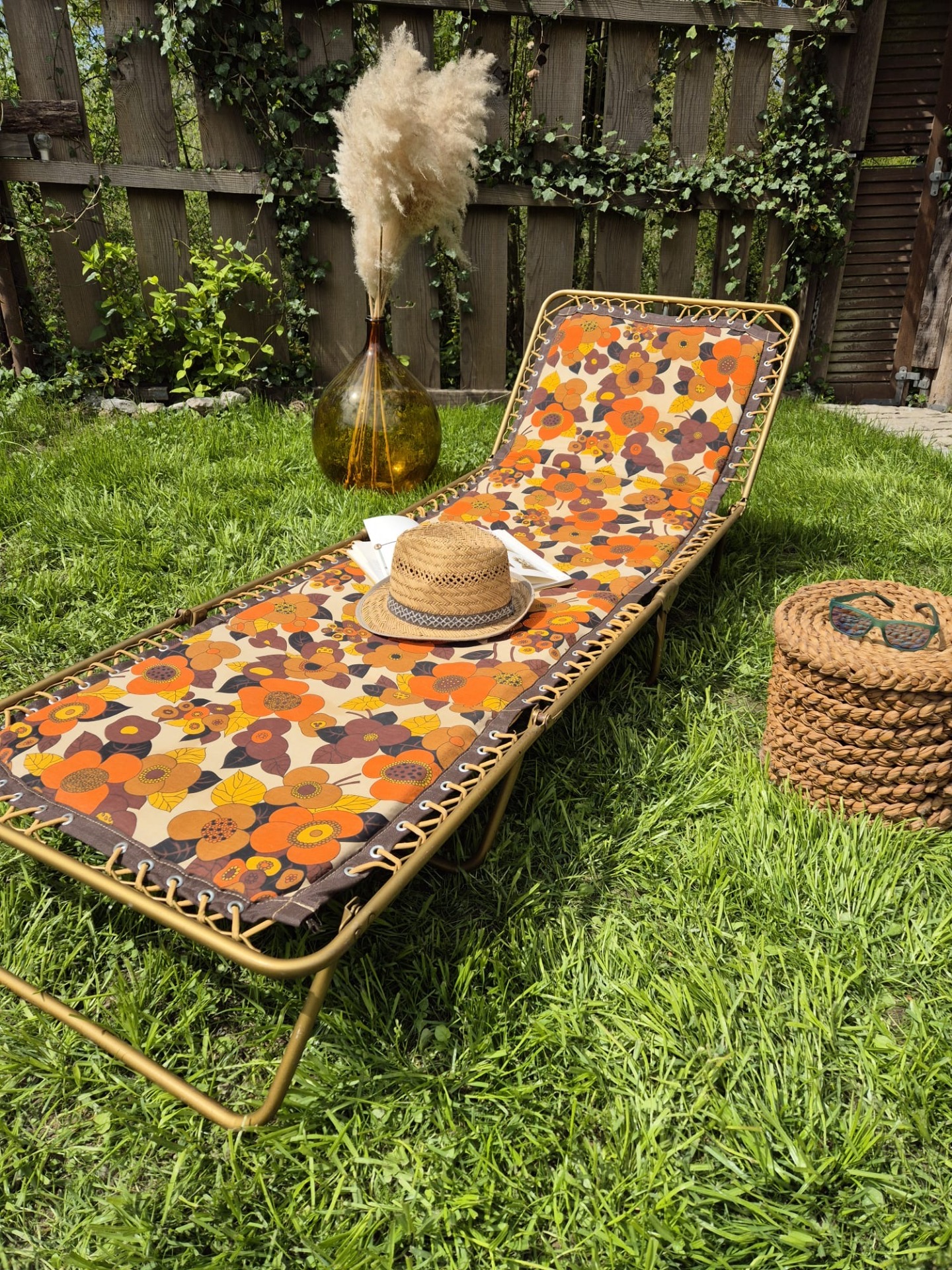 Bain de soleil ou transat Lafuma. Tissu d'origine style flower power