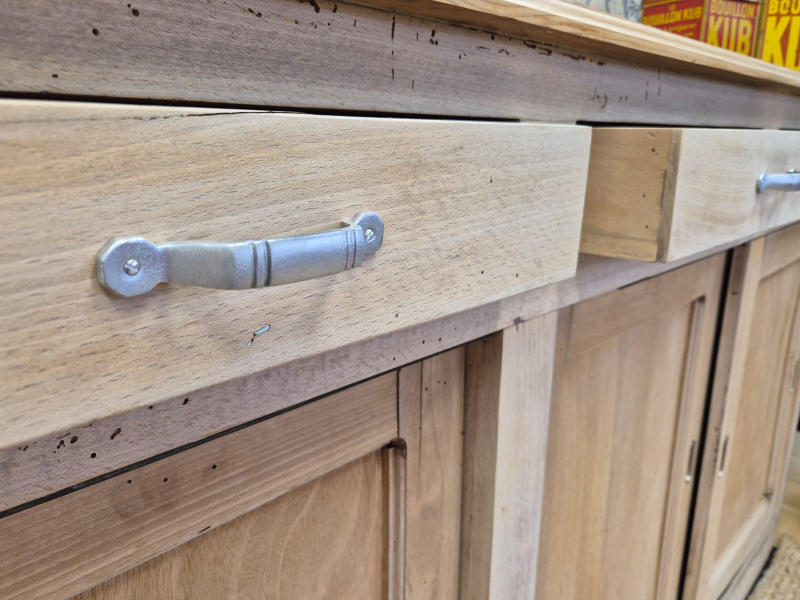 Il dispose de 6 portes coulissantes ainsi que de 6 tiroirs avec leurs magnifiques poignées d'origine.